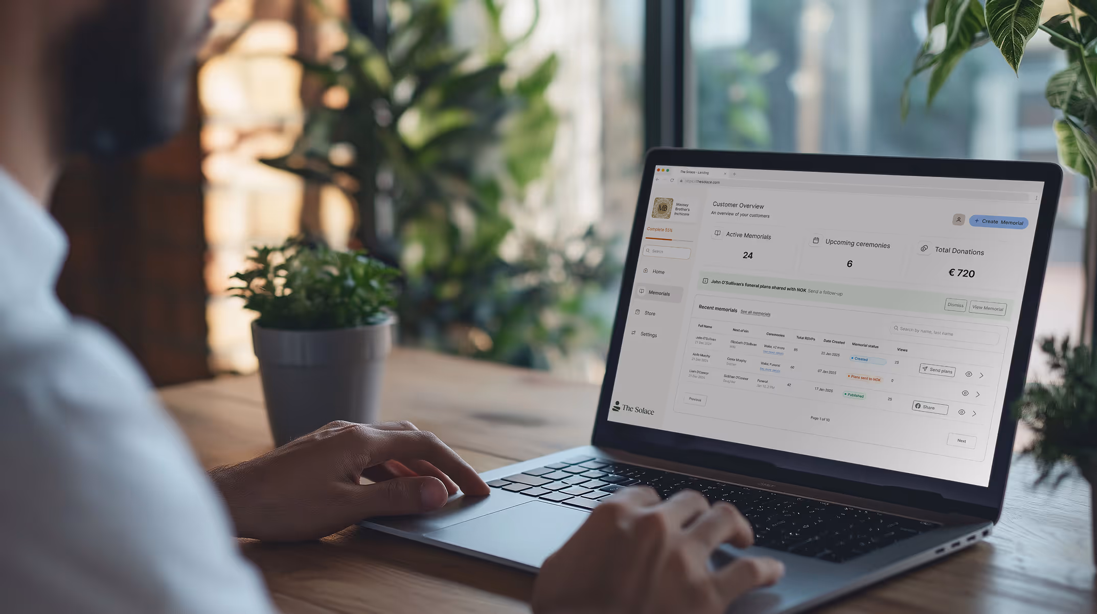 Your customers trust you, but they rarely use your website. With The Solace, Turn tributes, support and aftercare into connection, continuity and additional revenue.